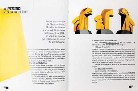 Desde 1992 una monumental escultura de Sebastián se levanta en la famosa glorieta del Caballito, donde confluyen céntricas calles de la ciudad de México. Una breve historia gráfica de su colocación, qué simboliza la obra y cómo fue que el artista la concibió, son sólo parte del contenido de este libro. El lector también podrá armar su propia Cabeza de caballo: encontrará las figuras e instrucciones necesarias para hacerlo y, al mismo tiempo, irá descubriendo que la escultura de Sebastián está hecha a partir de razonamientos geométricos, y de otras disciplinas científicas, aplicados al arte.