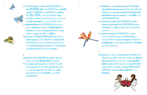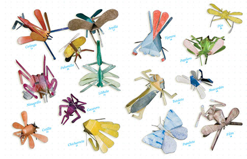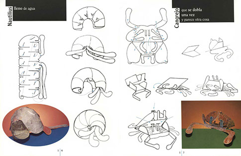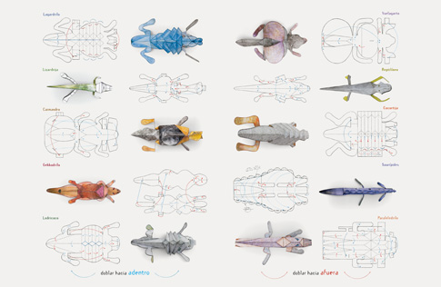 Un papel es plano, pero se dobla. Un papel doblado es espacio, pero vacío. Para ver una figura hay que armarla. Para armarla, hay que observar su estructura. Armada su estructura aparece la forma que contemplamos como un insecto. Estos insectos vuelan en nuestra imaginación cuando jugamos con el papel, armando y desarmando el espacio que no vemos ni tocamos. Este libro se escribe con los ojos y se lee con las manos.