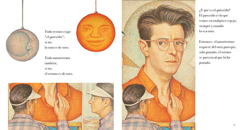 Un libro de iniciación al arte básico de introducción al género del autorretrato. ¿Quién es el que se pinta? ¿Quién es el que ve lo pintado? Pueden ser el artista y su retrato. Pueden ser el espectador y el retratado. Pero, siempre, son dos. Uno y otro se reconocen en la pintura, son parecidos y juegan a contarlo. Eso, y otras cosas, nos relata Manuel Marín. Él ve con detalle lo que O’Gorman pintó en su Autorretrato múltiple: volúmenes que vibran en el espacio de un plano cuando la luz sin sombras, siendo diurna, baña todo y traza líneas de colores que respetan el blanco del lienzo para develar una silla, unos pájaros, unas caras, un espejo. Uno ve y otro pinta. ¿Cómo saber quién es quién si es un Juan O’Gorman. Un autorretrato pintándose?