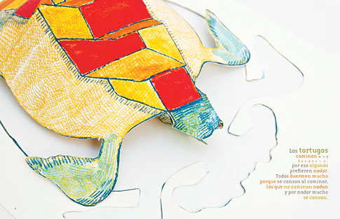 En este libro Manuel ensaya la forma de las tortugas, recorriendo el espacio, doblando el papel.