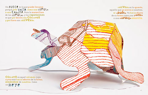 En las páginas en blanco de este libro nacieron líneas, figuras, sombras, texturas, colores, mundos inéditos que, en sus caprichosas formas, esconden seres que reflexionan sobre todo lo visible, sobre todo eso que los rodea y es el marco para sus aventuras, que son las aventuras del pensamiento creativo en todo su sencillo esplendor: ver, mirar, leer, imaginar, pensar, hacer. Con este pensar podemos hacer de una caja un cubo, de una pelota una esfera, de un pirulí un cono. Ver lo transparente, imaginar lo complejo, descubrir una figura, construir un cuerpo geométrico es pensar el espacio. Pensar lo abstracto nos lleva a la relación de las cosas.