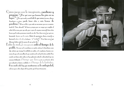 Ésta es una caja, casi en sentido estricto, de sorpresas. Es un libro-objeto hermoso y útil. Enternecedor. Su portada muestra un foro construido en tercera dimensión, con profundidad, más allá de la superficie del texto impreso. No es una ilusión óptica: el libro ofrece realmente las piezas para armar un teatrino. Al abrirlo descubrimos que contiene un elogio de la imaginación, una fábula para ser representada en el teatrito de títeres, ¡y los títeres mismos! También incluye una nota biográfica sobre el artista Mario Martín del campo.