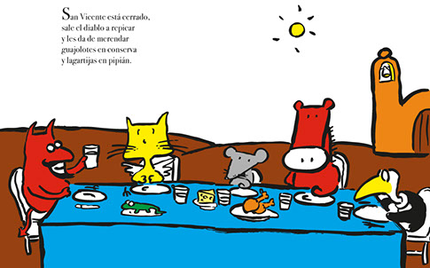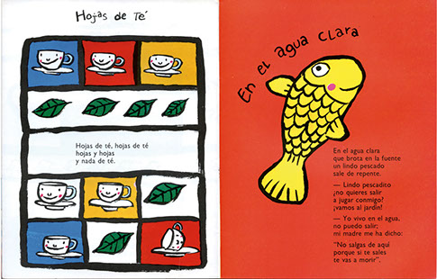 Las canciones que nos recuerdan los días de la cuna y la voz de los abuelos, se vuelven a oír al abrirse este libro. Sin embargo, ahora regresan para correr por el jardín y saltar murallas grandes, pues los dibujos en cada página nos sorprenden por su colorido y originalidad; forman un nuevo espacio para la lírica tradicional y el folclor; un espacio infinito y actual.