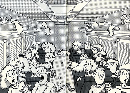 En este libro, que se despliega como un acordeón, una serie de animales se dirigen en la misma dirección mientras empieza a caer una constante lluvia. Caminan juntos hacia un destino incierto, y la lluvia se intensifica. Pronto, el mundo entero está inundado. Al reverso del acordeón la historia continúa, y a lo lejos los animales pueden ver un arco iris. Una metáfora acerca de la posibilidad de superar las adversidades.